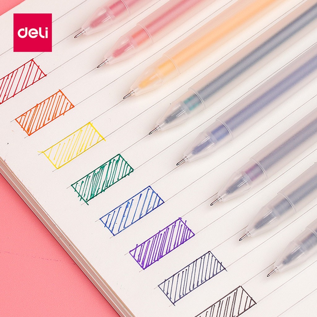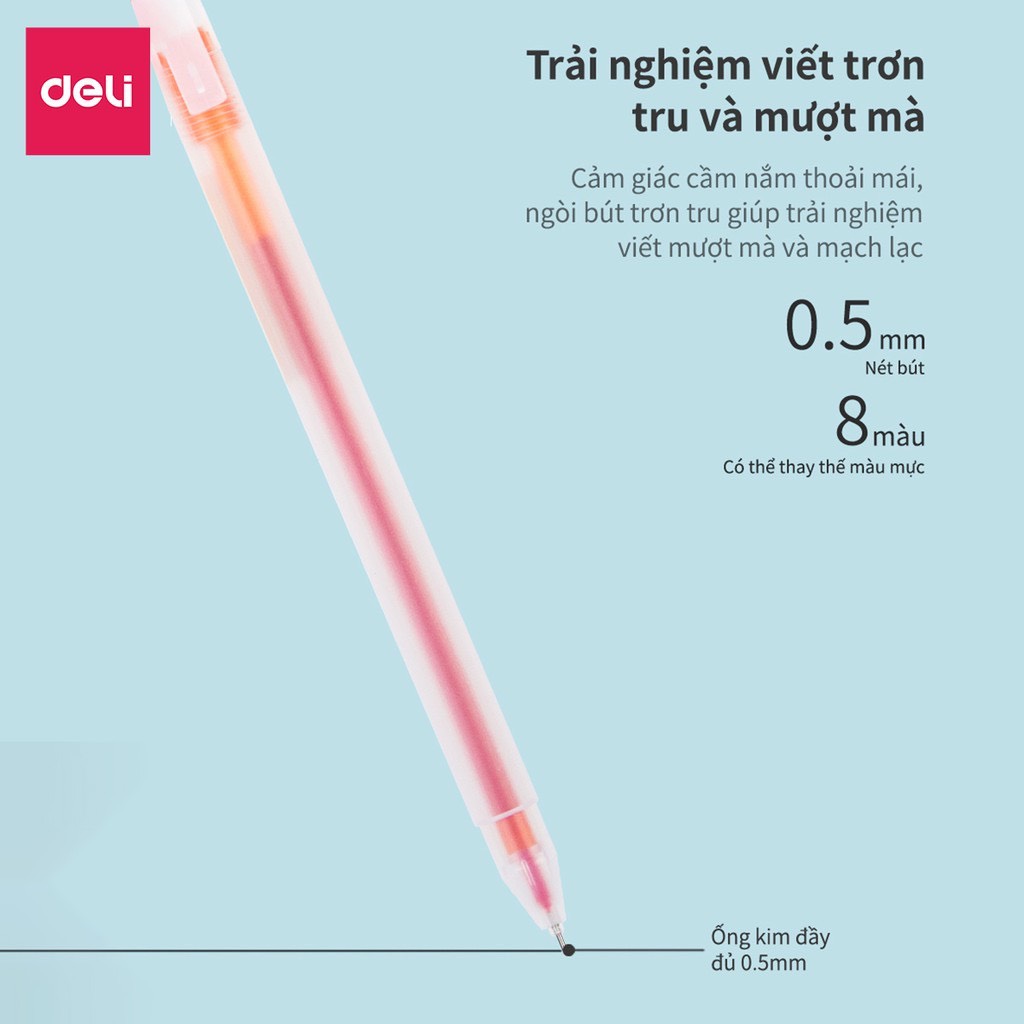 Bộ 8 bút nước nhiều màu Deli 33160 ngòi 0.5mm kèm 8 ống mực thay thế