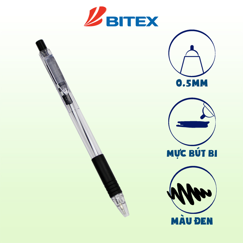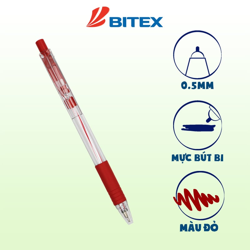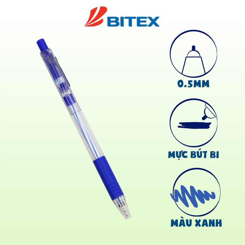 Bút Bi Bitex B03 Ngòi 0.5mm - EN71, Mực Xanh/đen/đỏ