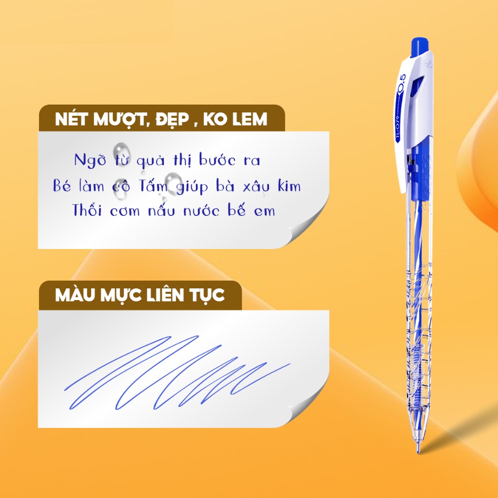 - Bút dạng bấm cò, đầu bi 0.5mm.