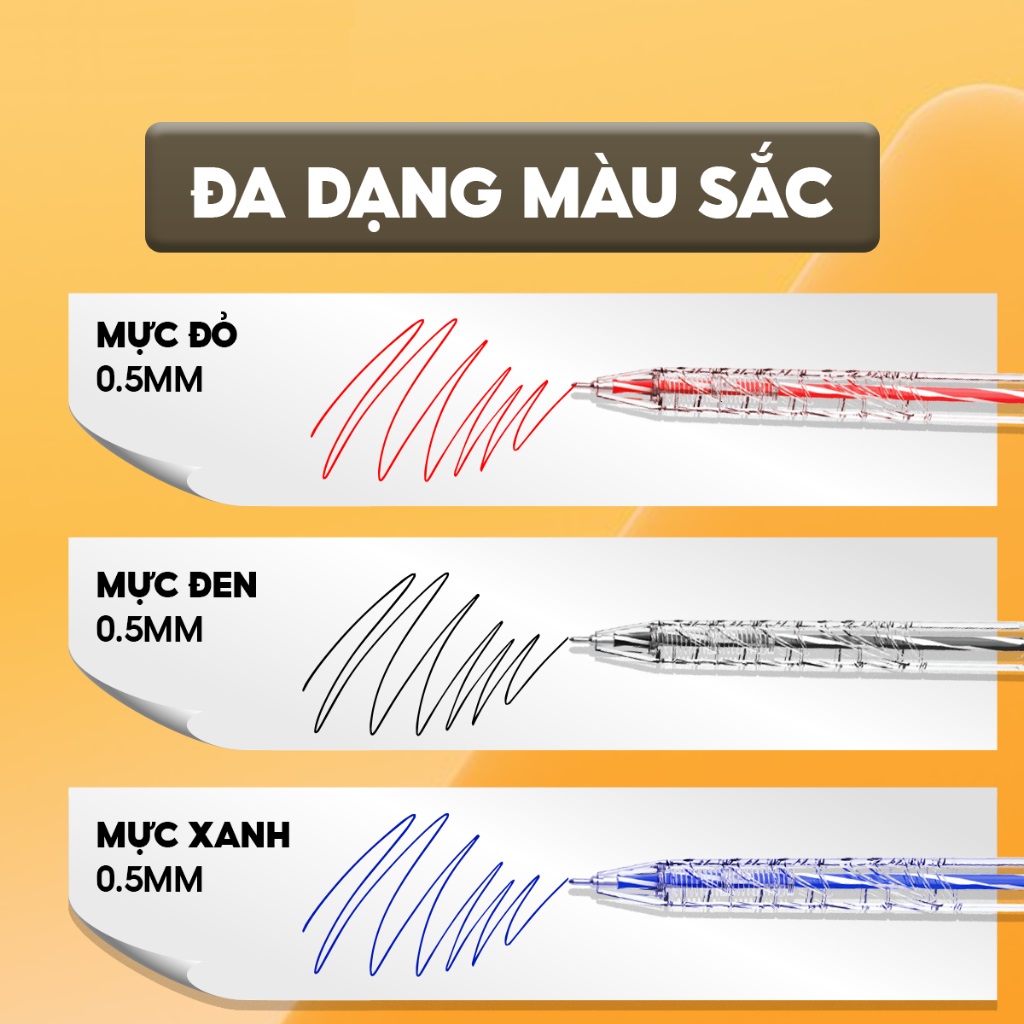 - Thân bút bằng nhựa nhìn thấy rõ ruột bút và màu mực bên trong.