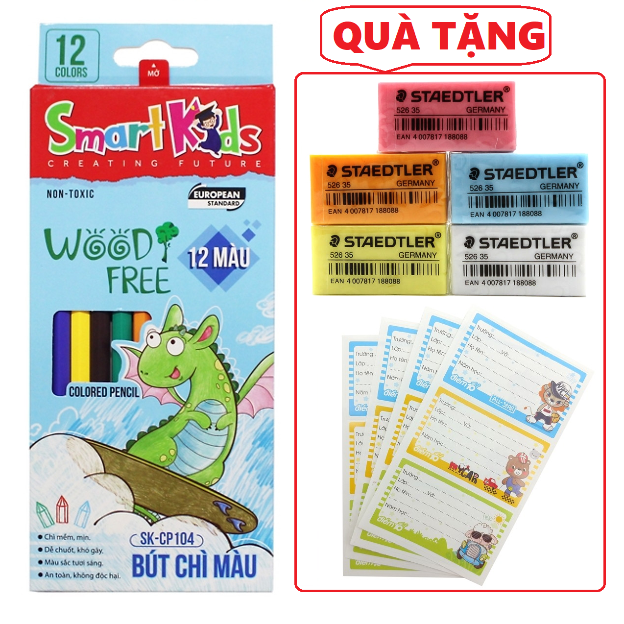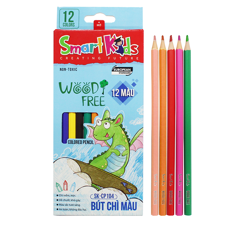 Bút chì màu 12 màu Smartkids SK-CP104 - Tặng 1 nhãn vở và tẩy chì Staedtler