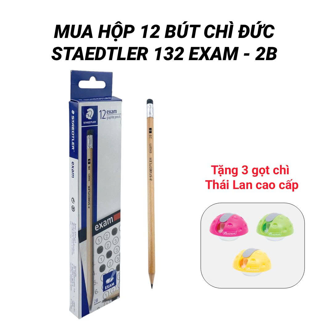 [MUA 12 TẶNG 3 GỌT CHÌ THÁI] Bút chì STAEDTLER EXAM 132 40 - Độ cứng 2B, có tẩy, thân mộc