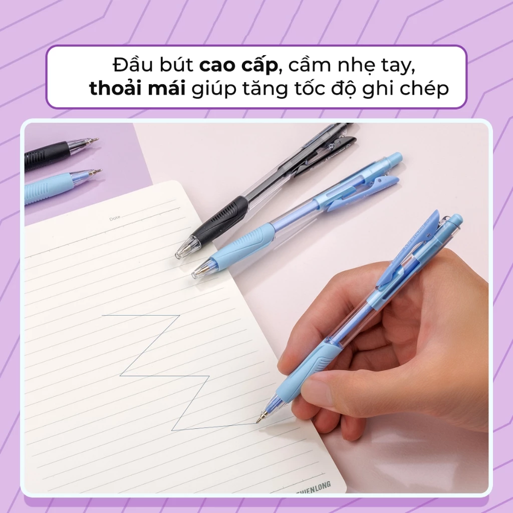 - Cơ cấu bấm sáng tạo, tự động thu ngòi cực kỳ tiện lợi.