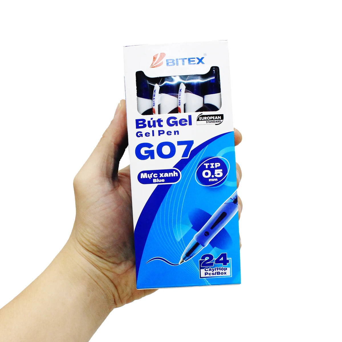 Bút Gel Bitex G07 Ngòi 0.5mm - Mực Xanh, Đen với thiết kế nổi bật, đẹp mắt, mang lại trải nghiệm viết mượt mà và giảm mỏi tay khi viết nhiều. Dành cho học sinh, sinh viên và người làm văn phòng.