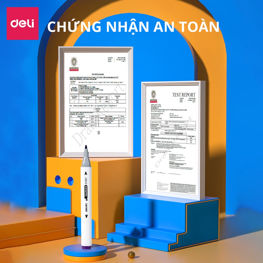 Bút lông màu Marker 2 đầu 12 màu Deli 70816-12 - Hộp nhựa, tô màu vẽ tranh chuyên nghiệp với Thiết kế hai đầu bút: đầu vát và ngòi nhỏ tiện lợi, có thể đáp ứng mọi nhu cầu sử dụng: