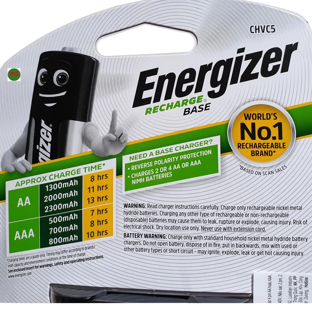 [Chính Hãng] Máy sạc pin ENERGIZER CHVC5 Kèm 4 pin AA 1300mAh - Sạc cho pin AA và AAA - (Nhập Khẩu Độc Quyền Bởi DKSH Việt Nam)