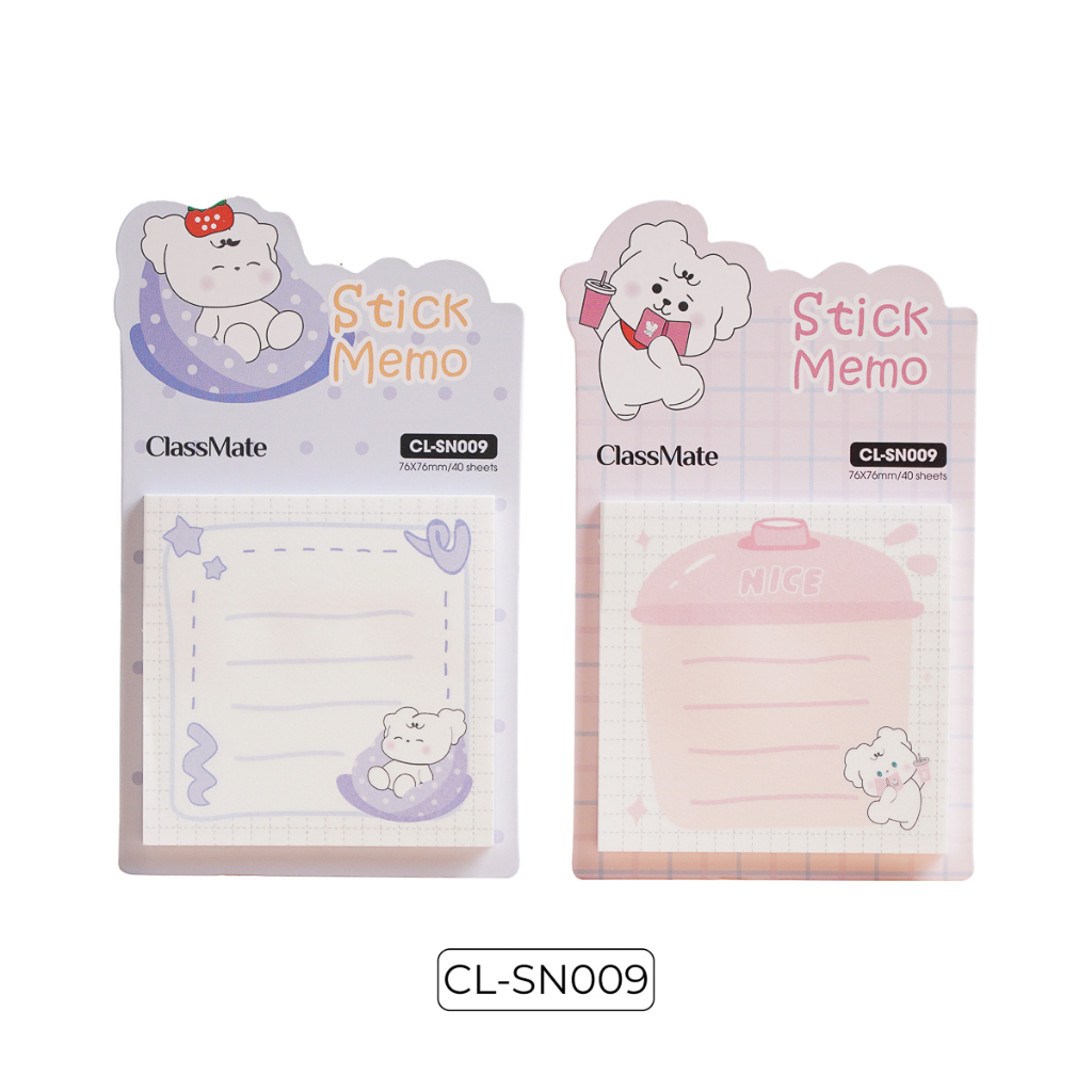 Giấy note ghi chú Clasmate CL-SN009 - hình cún trắng, 40 tờ/tập, kích thước 76x76mm