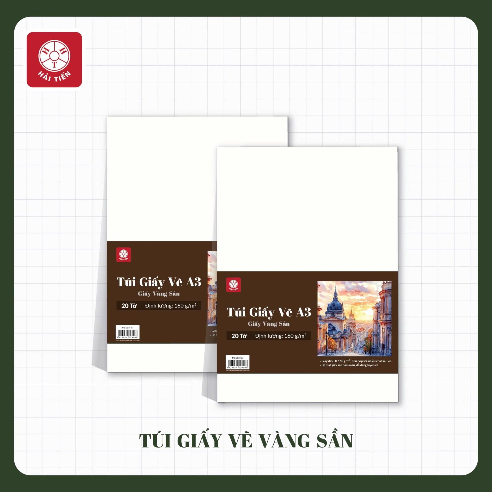 Giấy Vẽ A3 Hải Tiến 20 Tờ 9103 Vàng Sần - Kích thước 297x420mm, Định lượng 160gsm- Phù hợp cho nhiều loại bút và chất liệu vẽ (cả màu nước)