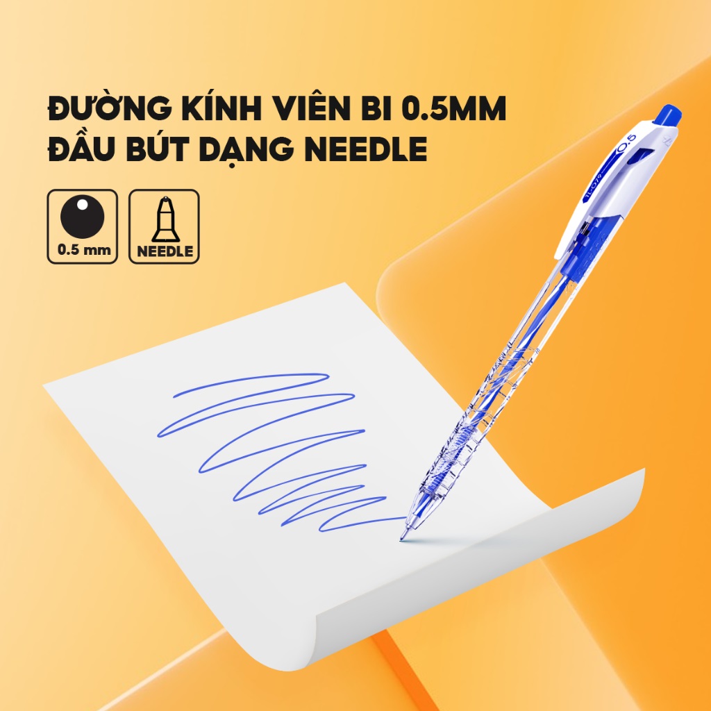 - Bút dạng bấm cò, đầu bi 0.5mm.