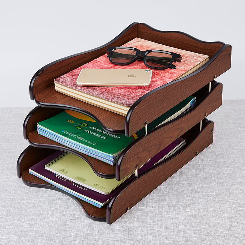 Khay tài liệu 3 tầng gỗ HX-5013 được làm từ chất liệu gỗ, nhẹ, ít bám bụi, dễ vệ sinh lau chùi. Các chi tiết được mài nhẵn, không có góc cạnh sắc nhọn, đảm bảo chất lượng, an toàn, tính thẩm mỹ