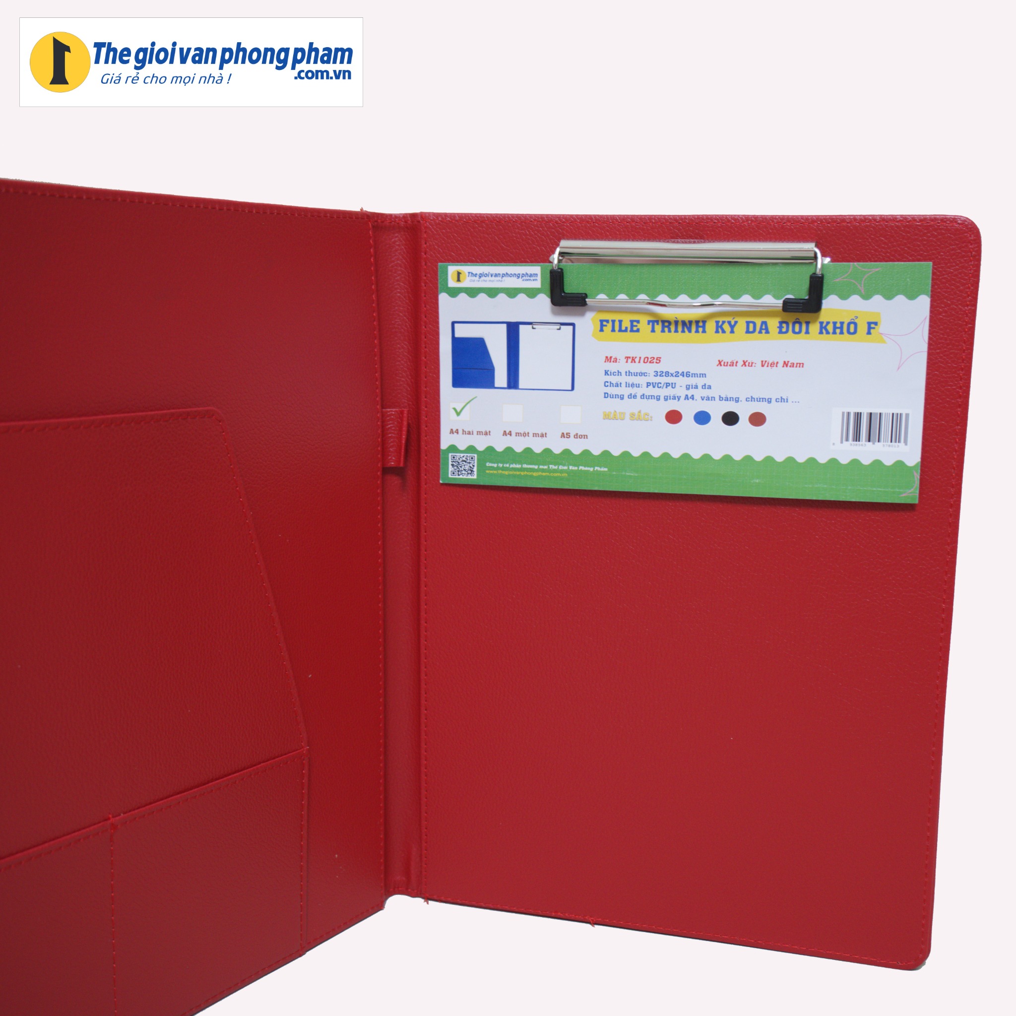 • Bìa đôi có kẹp giấy inox chắc chắn