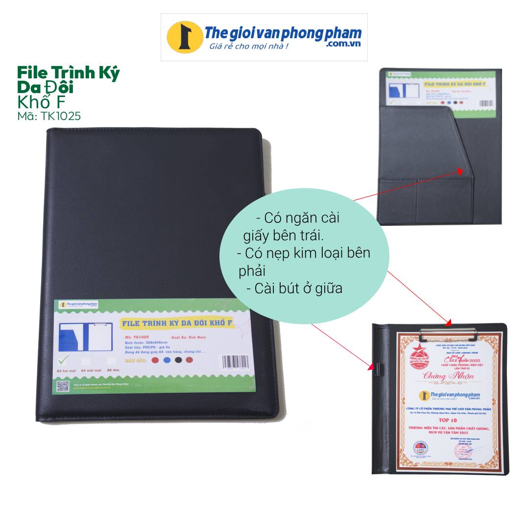 [MẪU MỚI] File Trình Ký Da Đôi Khổ F Mã TK1025 - Kích thước: 328mm x 246mm