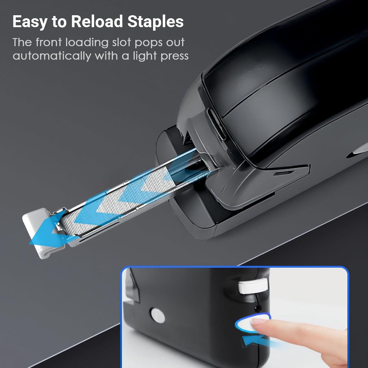 Máy dập ghim tự động Plus hoạt động bằng cơ chế cáp USB hoặc pin AAA mang đến sự tiện lợi cho nơi làm việc của bạn, chỉ cần đưa giấy vào là máy tự động dập.