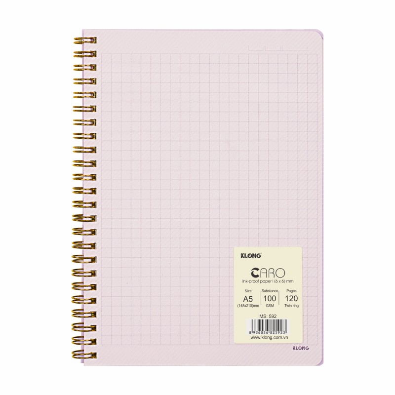 Sổ Dash Caro (6x6)mm lò xo kép bìa nhựa 2 mặt khổ A5 Klong 120 trang 592 - Định lượng 100gsm