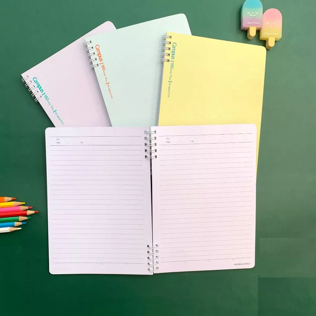 Sổ lò xo B5 Campus KUSUMI 2 đầu 160 trang - Dòng kẻ ngang - Định lượng 70gsm, kích thước 179x252mm