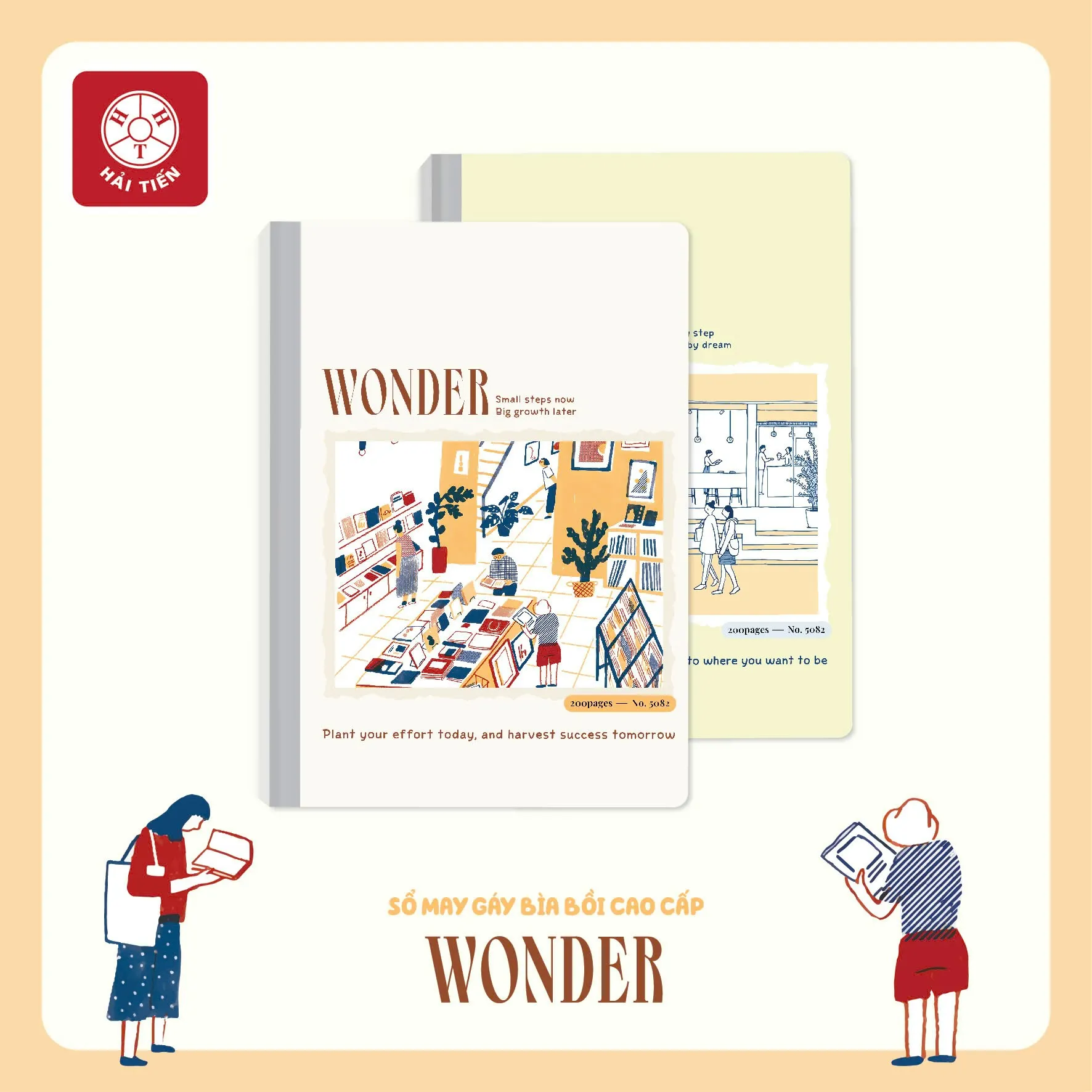 Sổ May Gáy Bìa Bồi A4 Hải Tiến 200 Trang WONDER 5082 với thiết kế tinh tế, trẻ trung và tràn đầy cảm hứng, sổ Wonder của Hải Tiến sẽ giúp bạn lưu giữ từng bước đi, từng ước mơ và cả những khoảnh khắc sáng tạo đáng nhớ.