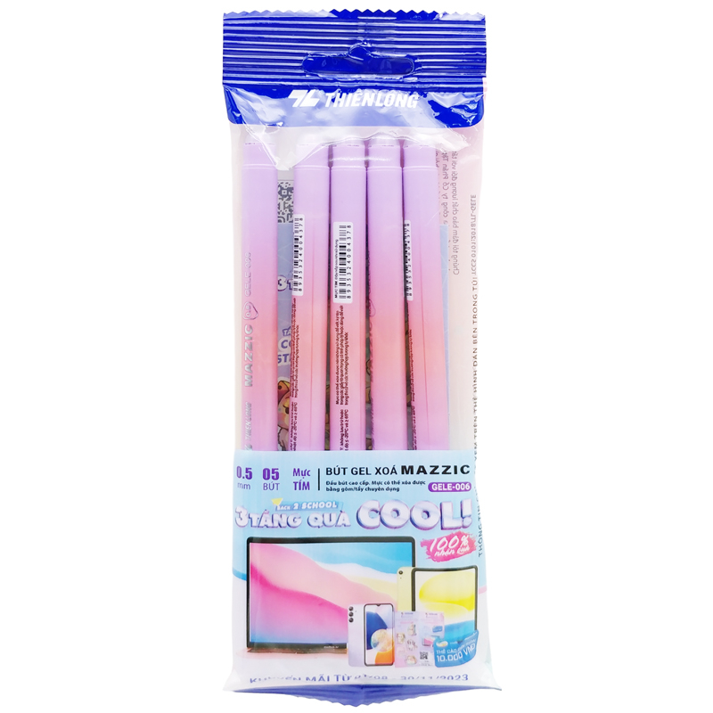 Vỉ 5 Bút gel xóa được Mazzic Thiên Long GELE-006 nét 0.5mm - Mực tím