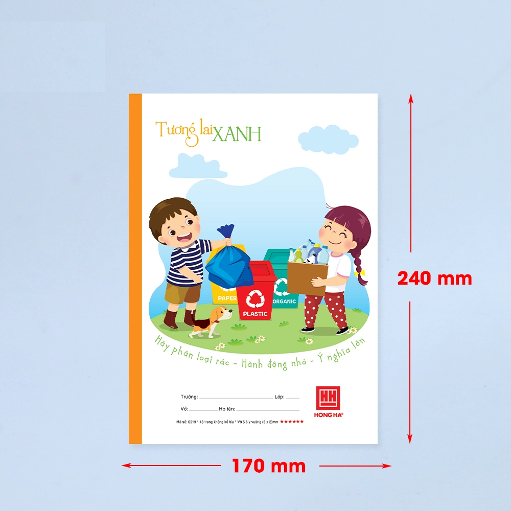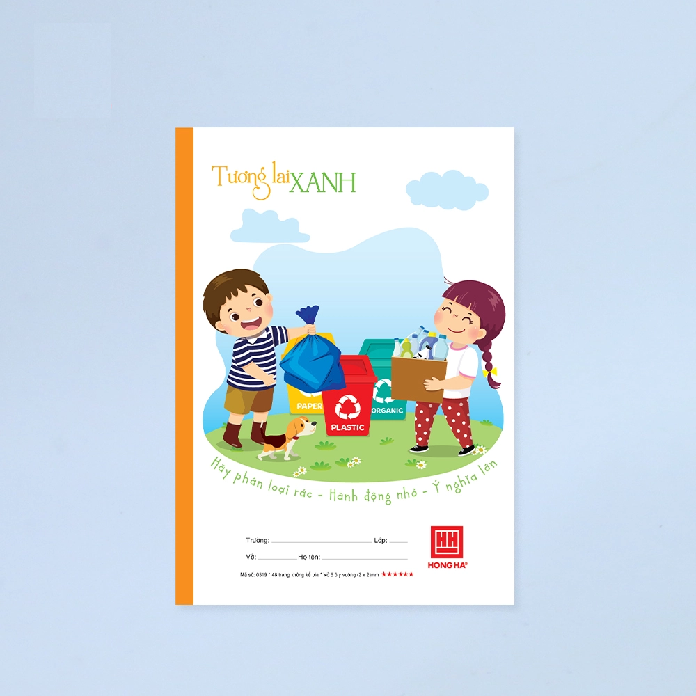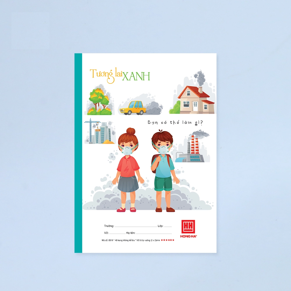 Vở 5 ô ly Hồng Hà 48 trang Tương Lai Xanh 0519 - Định lượng 100gsm - Mua 10 quyển tặng 01 bút chì