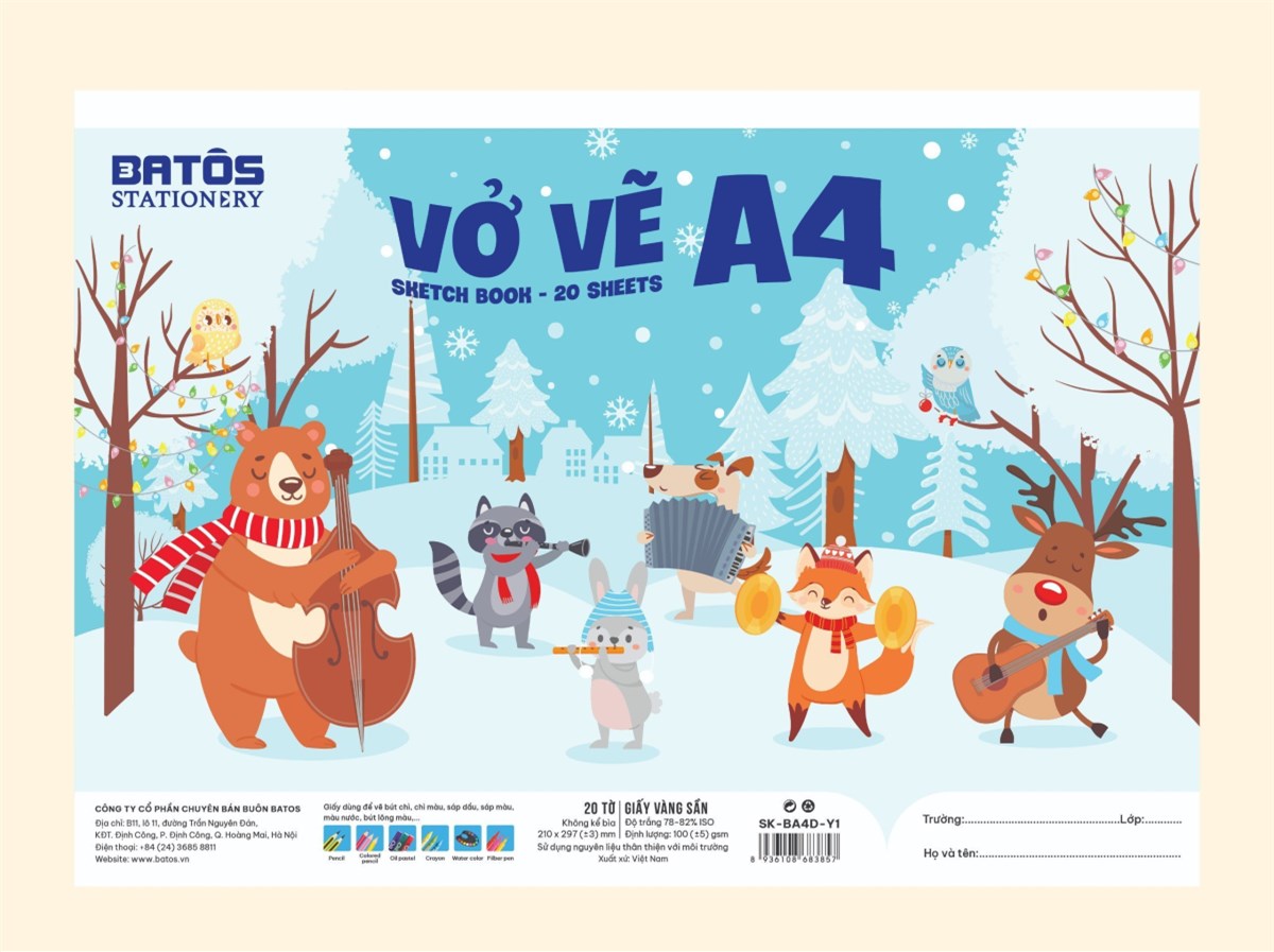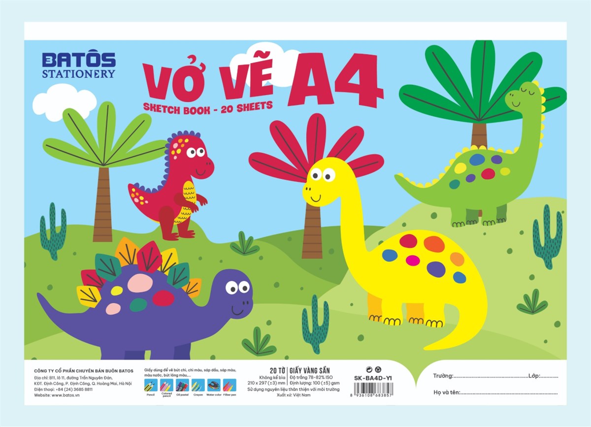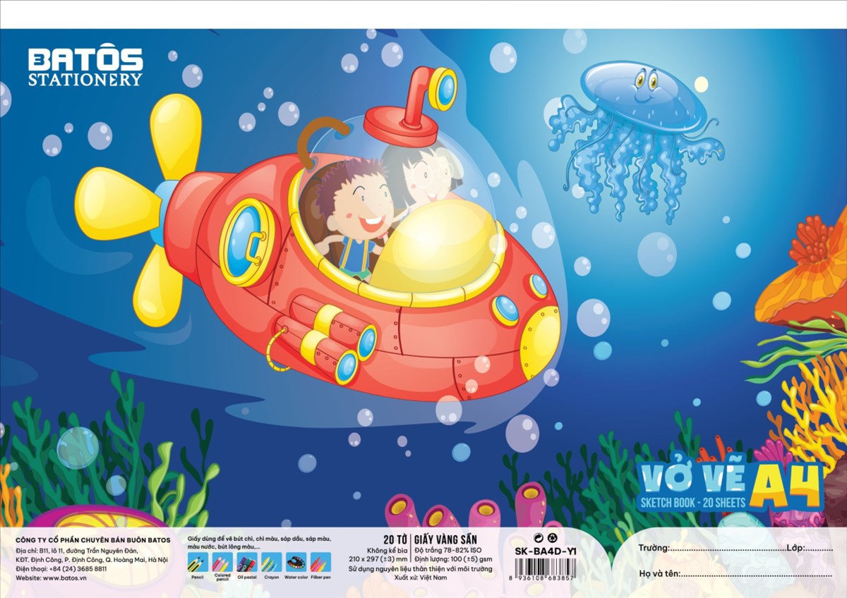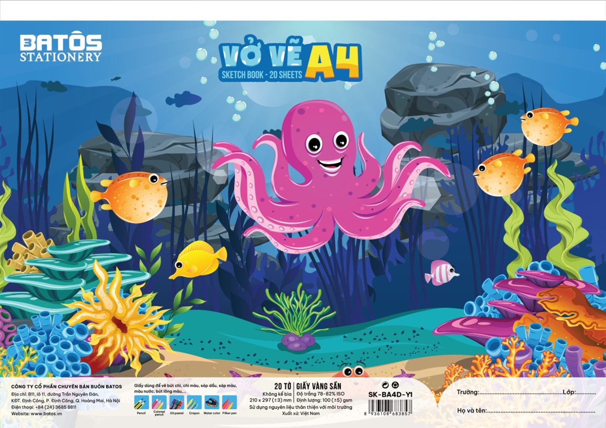 Vở Vẽ A4 BATOS STATIONNERY 20 Tờ SK-BA4D-Y1, Định Lượng 100gsm: Sản phẩm phù hợp cho học sinh tiểu học và trung học sử dụng trong giờ học vẽ. Việc sở hữu một cuốn vở vẽ chất lượng sẽ giúp họ phát triển trí tưởng tượng và kỹ năng hội họa, khám phá sự sáng tạo của bản thân mỗi ngày.